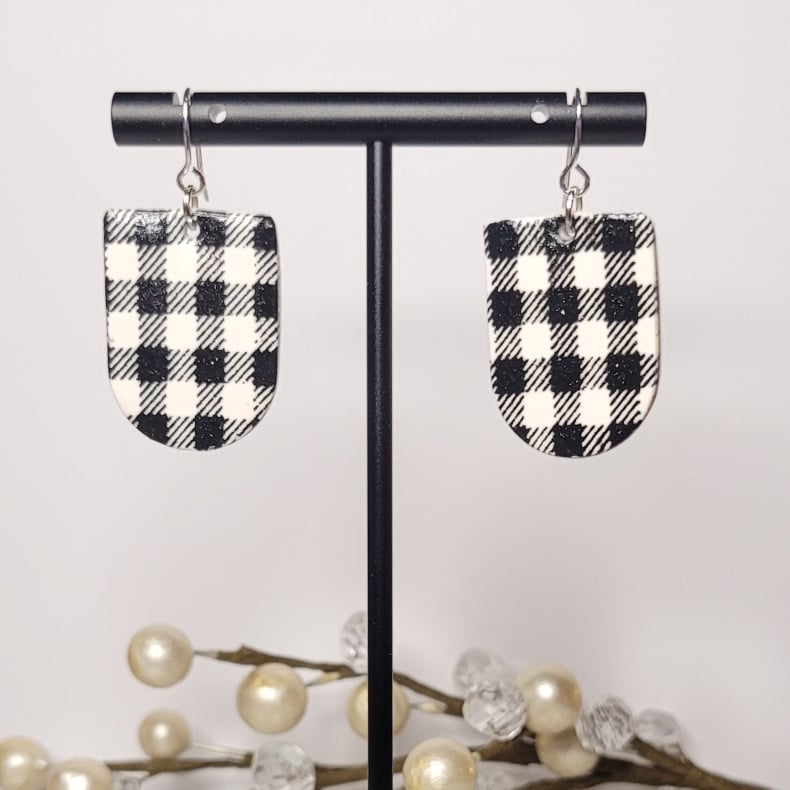 - Color: B&W Buffalo Plaid painted on clay