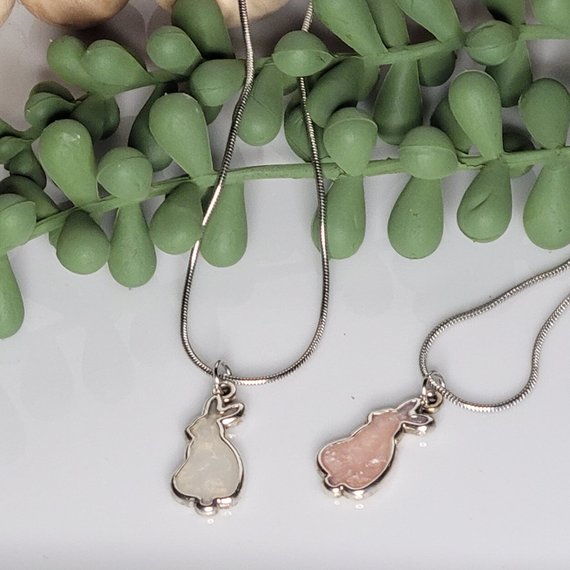 This cute bunny charm necklace is perfect for the little princess in your life! Its dainty and on a 16 inch chain, which lays nicely for young girls.