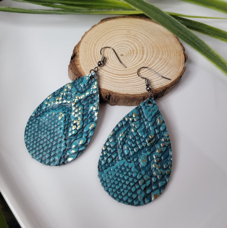 Calypso Blue Snakeskin | Genuine Leather | Earring | Gold accents