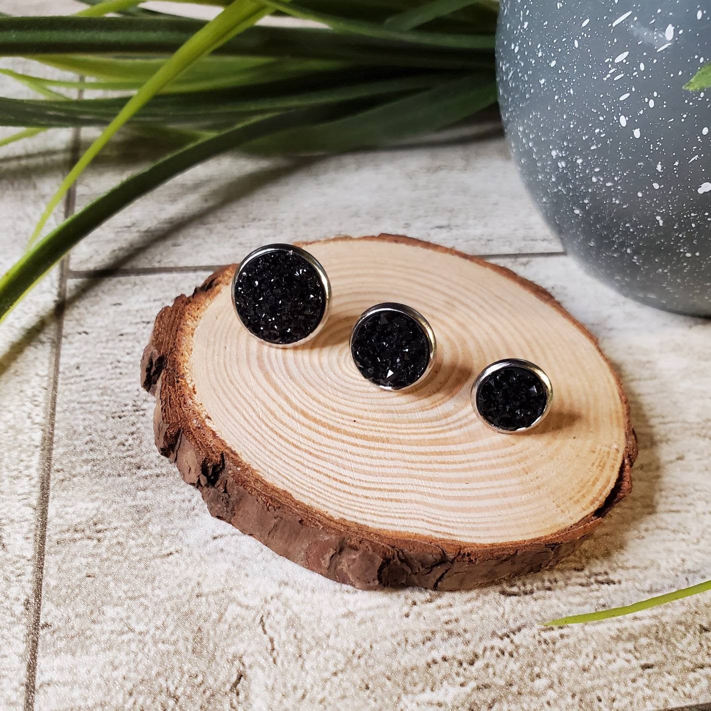 Druzy Stud | Black | Earrings | Faux Druzy | Multiple Sizes