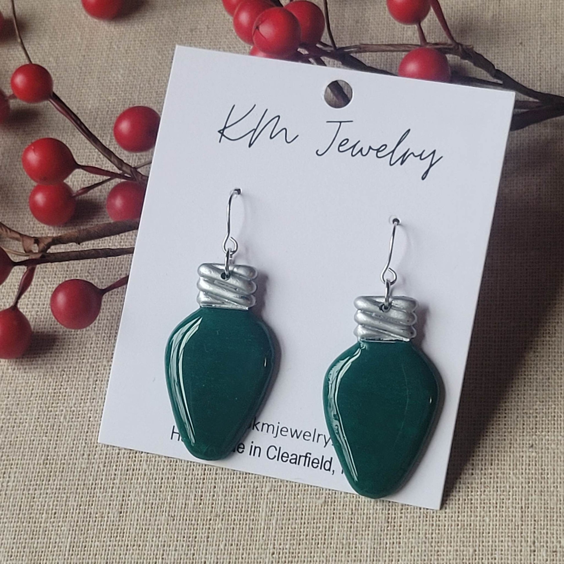 Holiday Bulb | Green | Earrings | Clay