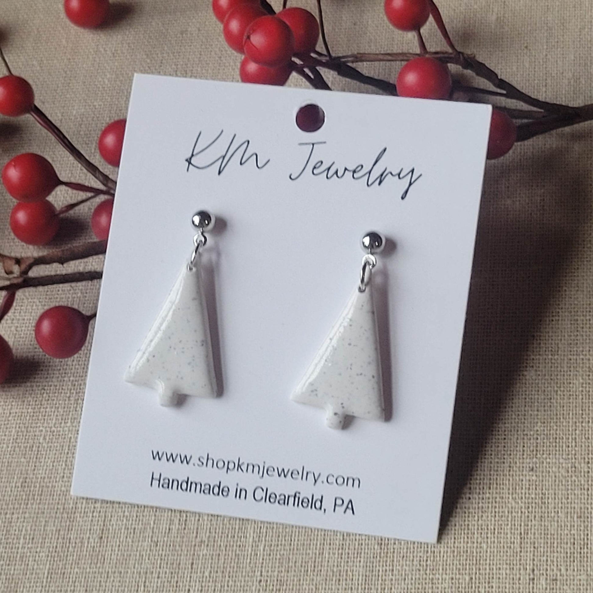 Holiday Tree | Snowy | Stud Top | Earrings | Clay