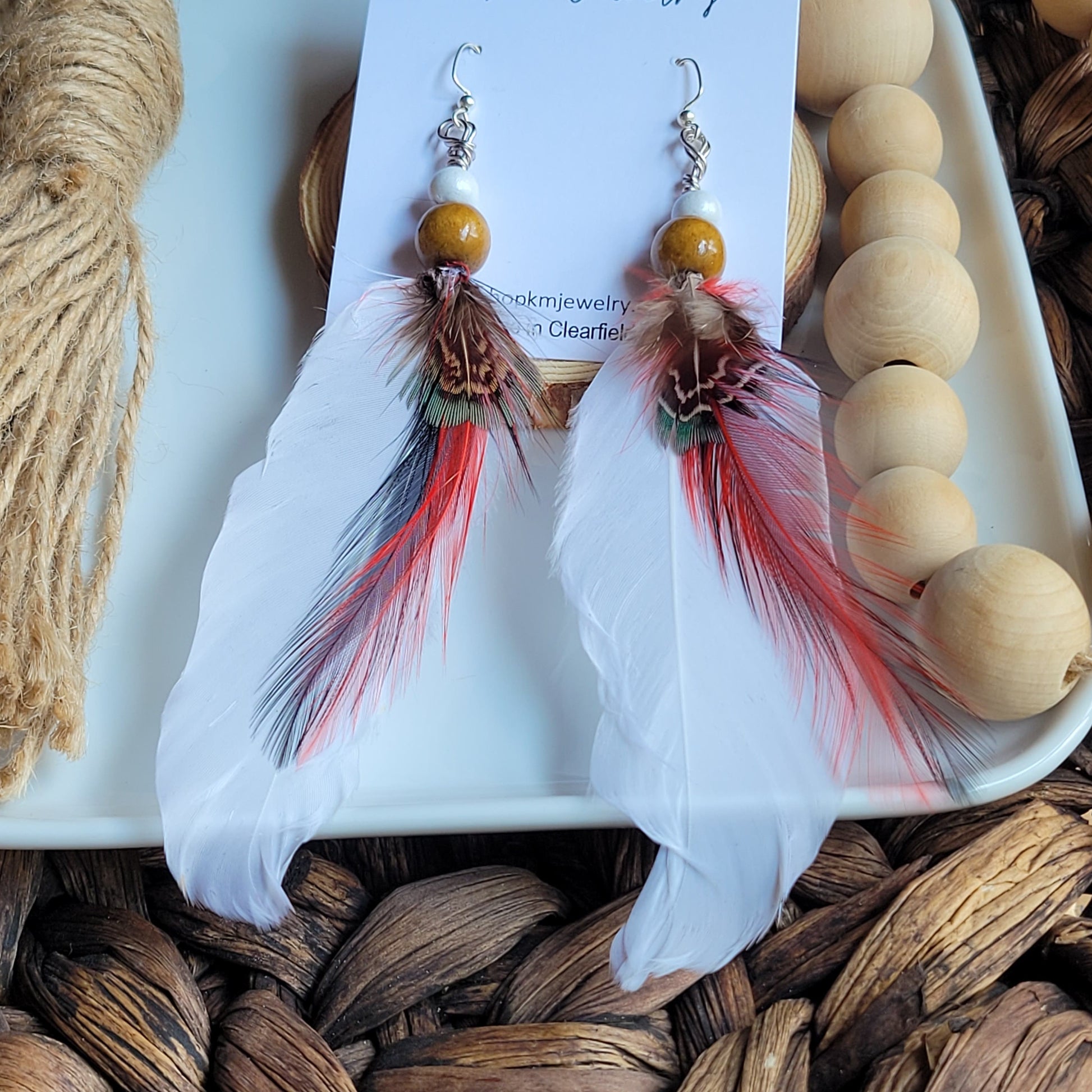 I've made these beautiful pieces using genuine bird feathers, a mix of beads and wire wrapping techniques. These beautiful feathers makes each pair truly a unique, one of a kind, piece of art.