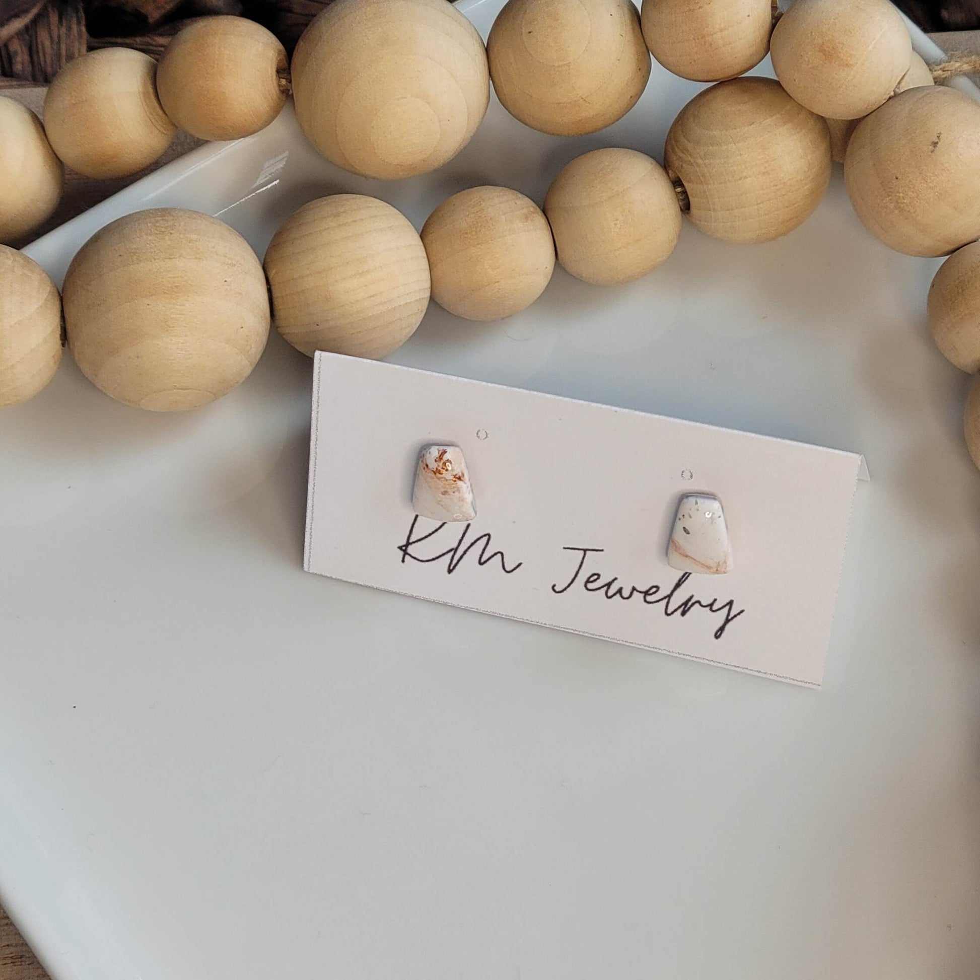 Rose Gold Marble | 10mm | Mini Trapezoid | Stud | Clay
