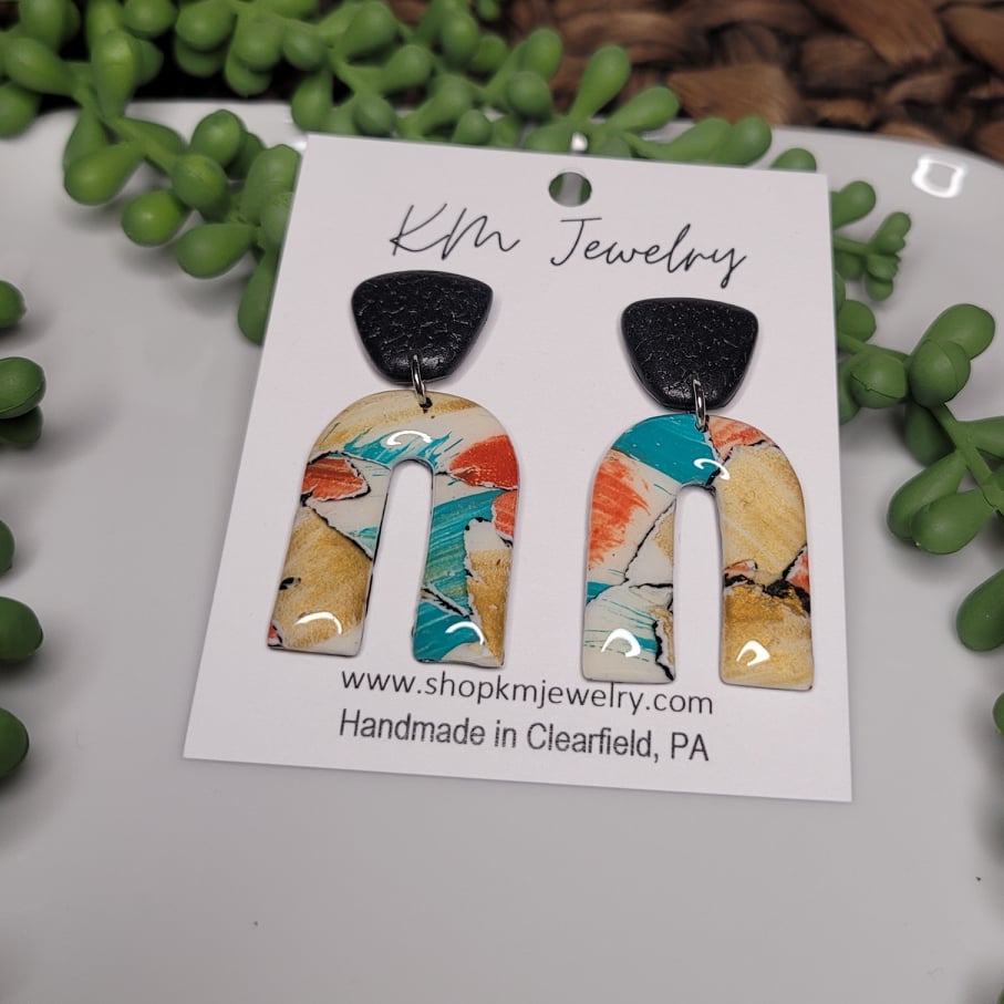 I hand mix the clay colors & designs, cut, shape and bake them in my home. They are finished by hand sanding & polishing each one for a truly unique piece of art. My jewelry is handmade with love, perfectly imperfect and made with extreme care.