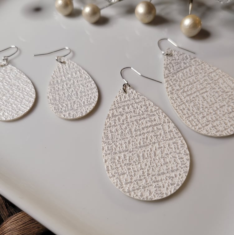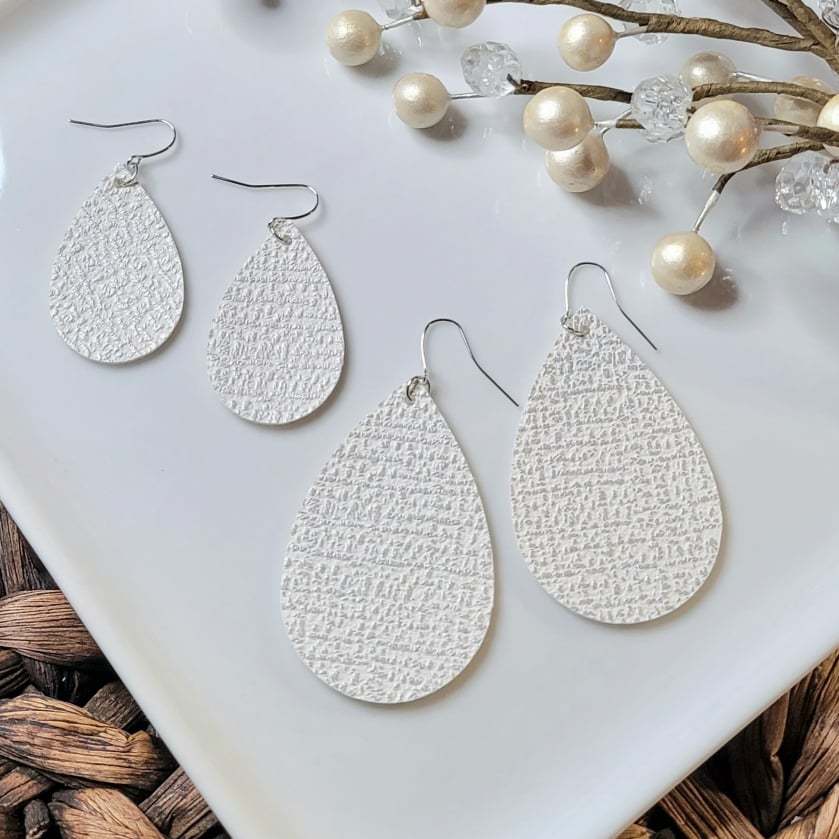 White | Silver Sparkle | Teardrop | Faux Leatherette | Earrings